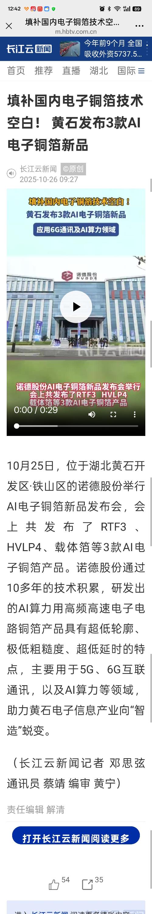 10月25日,诺德股份于湖北黄石基地隆重举办“箔动AI万物互联”AI电子铜箔新品发布会。本次活动汇聚政府领导、行业专家、产业链伙伴及媒体代表们,共同见证AI时代诺德股份全系列电子铜箔新品的发布。通过行业大咖主题演讲、新品发布及战略签约三大核心环节,为高端铜箔技术革新与产业链协同发展注入强劲动能。 开幕致辞:擘画发展新蓝图 发布会伊始,诺德股份董事长陈立志先生致辞,为本次盛会拉开序幕。他回顾了诺德股...