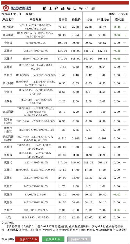 根据最新信息,北方稀土(600111)下周一(2026年4月13日)的股价走势预计将受到重大利好消息的积极影响。 核心利好因素: 稀土精矿价格大幅上调:4月10日晚,北方稀土与包钢股份同步公告,将2026年第二季度稀土精矿关联交易价格调整为不含税38,804元/吨,较第一季度(26,834元/吨)环比上涨44.61%。这已是自2024年第四季度以来连续第七个季度调升价格,累计涨幅达131.79%。...