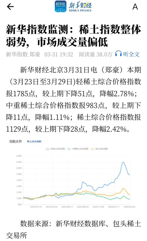 $中国稀土(SZ000831)$ $北方稀土(SH600111)$ 首先,根据新华财经权威数据,绿色线中重稀土的价格指数,1季度整体是降价的。 而根据25年前三季度盈利1.92亿,而全年预告只盈利1.43亿—1.85亿,全年加起来不如前三季度多,也就是说,4季度亏损0.07亿—0.49亿。 而26年一季度中重稀土现货价格比25年4季度还低,说明一季度肯定比四季度亏损还多。 另外,因为25年4月起,...
