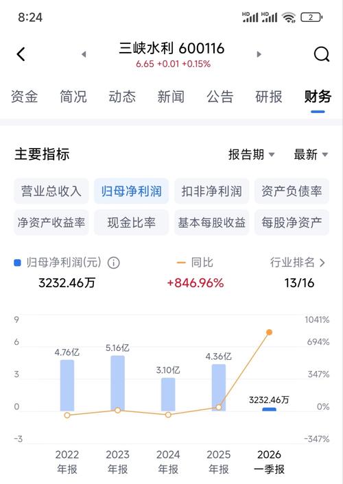 资讯 图解财报:三峡水利一季度归母净利润3232.46万元,同比增长846.96%