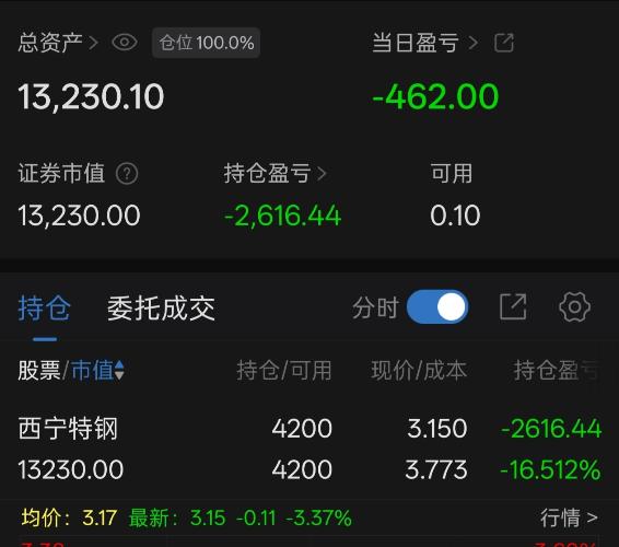 $西宁特钢(SH600117)$真是服了,3.96的本一路补还以为前天的3.19最低了心一横又补,结果今天又能跌到3.15,真的是温水煮青蛙