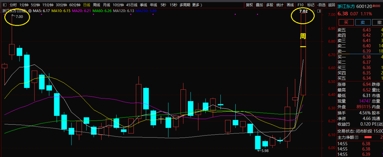 $浙江东方(SH600120)$大盘4千指日可待,轻轻松松的就上去了哈,让我们见证这牛逼的时刻哈哈哈,当然浙江东方也会随着这波潮流涌上你我心头,吃肉的时刻来了,接下来的量子科技是热门题材,十五五规划是国家重点项目扶持的项目。浙江东方的投资一定是有先见之明的必定是国企一定号召国家的政策实施执行,所以大方向没有任何问题,还是我之前说的6-7.5区间正当,站稳7.5就会突破上一个箱体也就是7-9.85区...