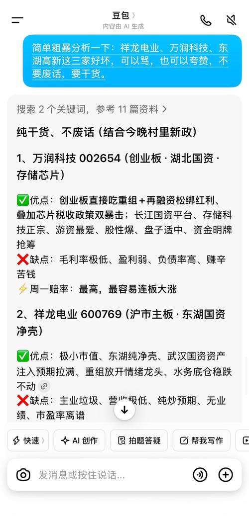 $东湖高新(SH600133)$$祥龙电业(SH600769)$$万润科技(SZ002654)$连豆包都瞧不起东湖,服了