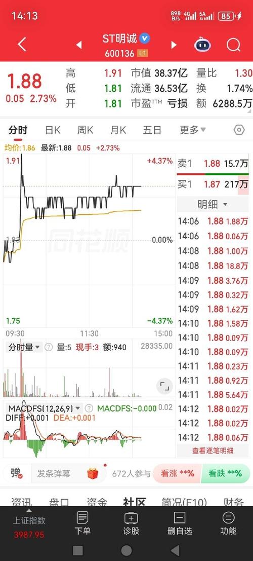 $ST明诚(SH600136)$气死了!以为还要再磨一磨,所以订的1.87卖一点,不小心点了全仓,结果一下子卖完了