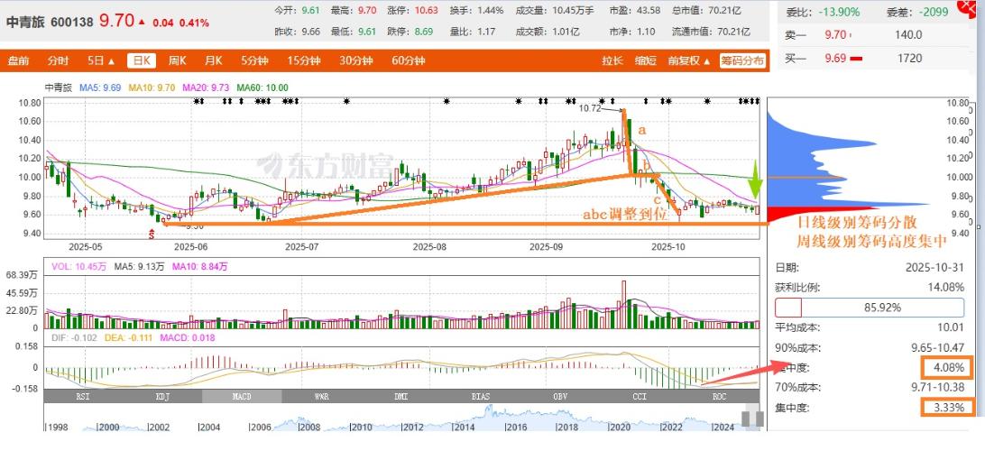 技术看盘:博一波短线,给躲牛市的小散们!季报落地,业绩不及预期,受极端天气的影响,当然还有整体行业复苏缓慢影响;拉长周线看,从2020年到2025年,包括还有24年924行情前的最低点8.69到高点13.30;5年时间,就在这个±20%区间波动,这叫稳得一批!当前股价又在中值11块下方10%左右;上下为极值,大部分时间会回归中值11块附近,那么短线就看回归到中值小空间吧!不是大盘创新高有回调风险,...
