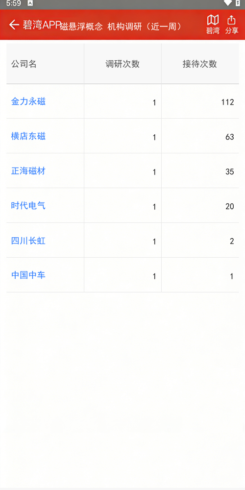今天刷碧湾APP的时候随手翻了下机构调研榜,发现磁悬浮概念这周有点热闹啊!金力永磁被调研1次,结果接待了112家机构,简直爆满;横店东磁也来了63家,正海磁材35家,时代电气20家,连四川长虹都接待了2家。我本来以为这板块最近没啥动静,没想到机构偷偷摸摸跑得挺勤快。看这架势,估计有啥新动作或者技术突破?反正这么多机构扎堆去问,总不会是纯来旅游的吧,感觉后面可能有戏,先盯着看看。