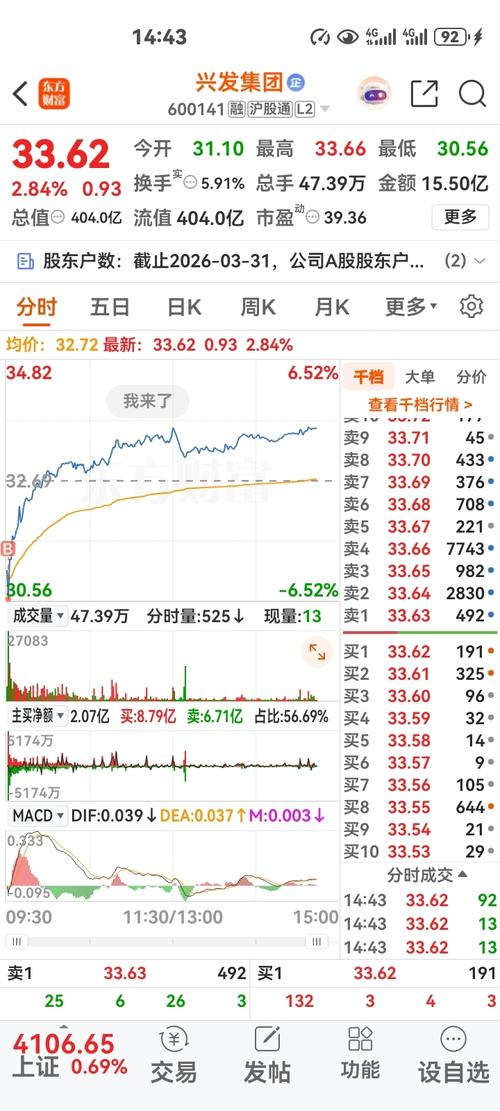 $兴发集团(SH600141)$日线一阳穿四线出现买点下个月应该收阳线40元