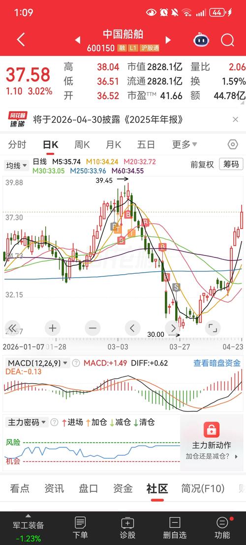 $中国船舶(SH600150)$明天向上突破40元!!!