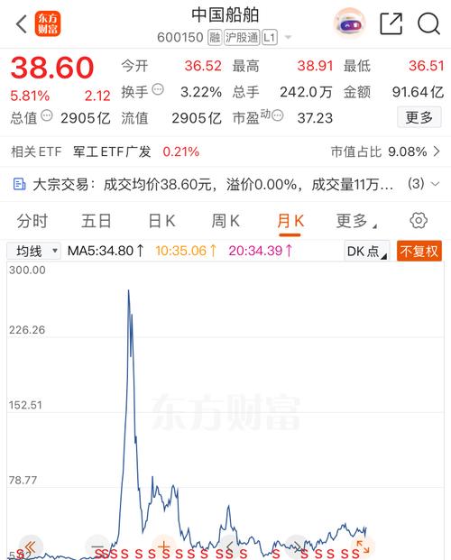 中国动力已经涨停,中国船舶你也争点气快快涨起来!216- 中国船舶4月23日大宗交易平台出现一笔成交,成交量11.00万股,成交金额424.60万元,大宗交易成交价为38.60元。该笔交易的买方营业部为华泰证券股份有限公司北京西三环国际财经中心证券营业部,卖方营业部为国泰海通证券股份有限公司总部。 证券时报数据宝统计显示,中国船舶今日收盘价为38.60元,上涨5.81%,日换手率为3.22%,成交额为91.64亿元,全天主力资金净流入11.16亿元,近5日该股累计上涨17.97%,近5日资金合计净流入22.36亿元。 两融数据显示,该股最新融资余额为66.68亿元,近5日增加3.57亿元,增幅为5.65%。