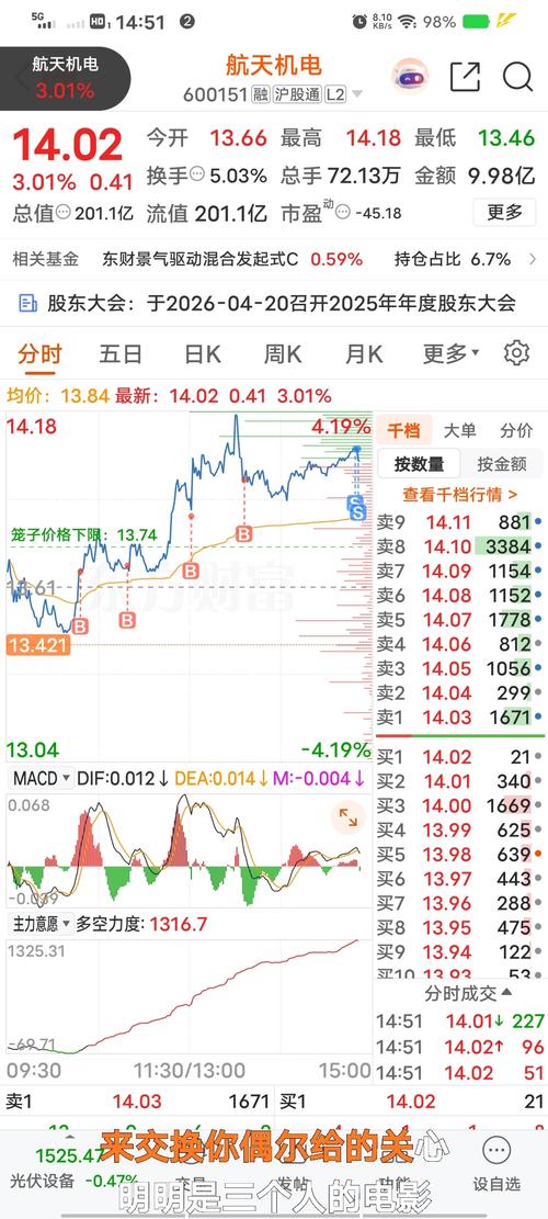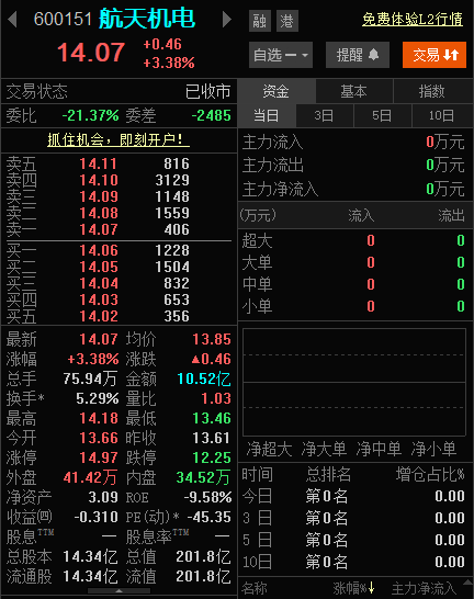 $航天机电(SH600151)$收盘终于站↑14