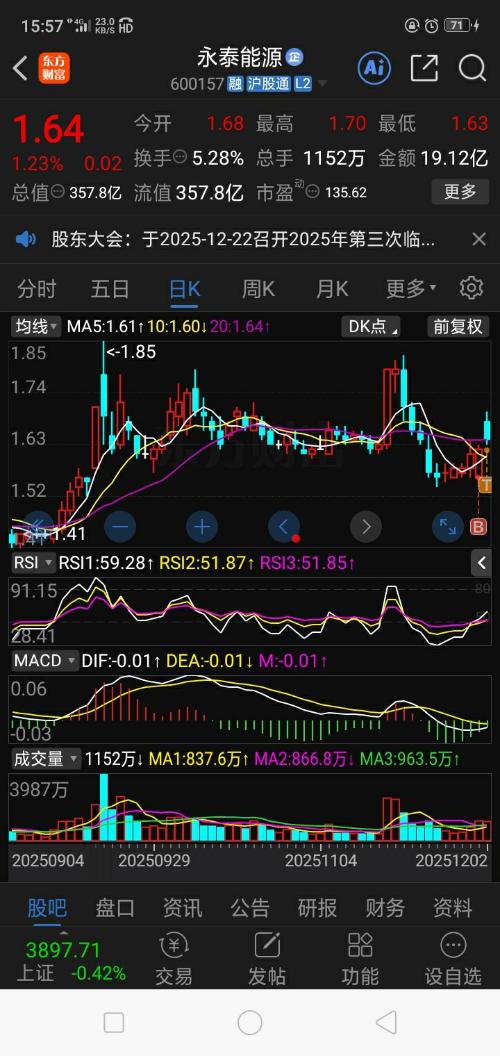 $永泰能源(SH600157)$今天用了吃奶的劲。终于涨了两分钱。