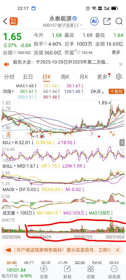 $永泰能源(SH600157)$鄙人不才,就认一个红柱子占多数,逐步带量上行,预测最低不会低于1.62,拉高1.8后缩量下跌10%几按理说到位了,周五明显有人承接几百万手 周一站起来