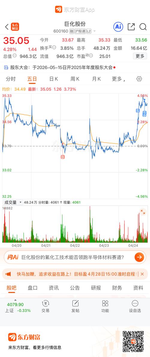 $巨化股份(SH600160)$ 根据华泰证券在2026年4月23日发布的最新研报,他们给予巨化股份“买入”评级,并给出了42.18元的目标价。 机构目标价的依据 这个目标价并非凭空设定,而是基于对公司未来业绩的预测和估值模型得出的: 1.业绩预测:华泰证券预测巨化股份2026年的归母净利润将达到60.04亿元。 2.估值方法:结合可比公司的估值水平,给予公司2026年19倍的市盈率(PE),从而...