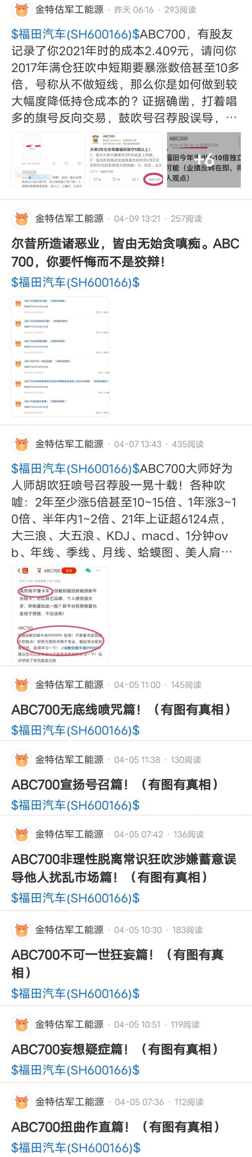- ABC700,你涉嫌虚构不实,非理性胡吹,无资质荐股,人身工击等等,你是否蓄意误导他人?你悠着点儿!