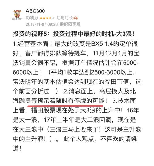 谨防一季报之前进入主升浪!理由有三:1.大盘牛市中,很难大幅度回调!2.福田技术面突破底部区域,各级别趋势共振概率大!3.福田销量业绩预期向好!~这个概率还是很大的!
