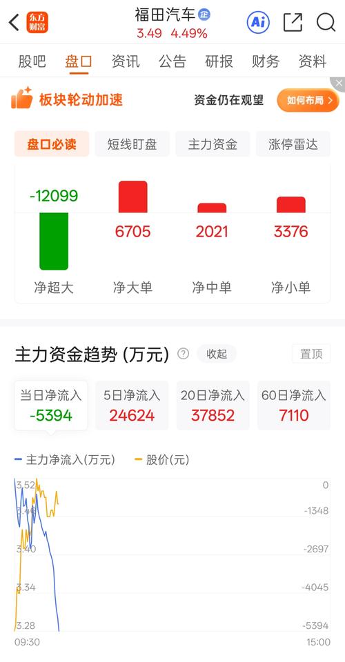 资讯 福田汽车成交额创2024年8月2日以来新高
