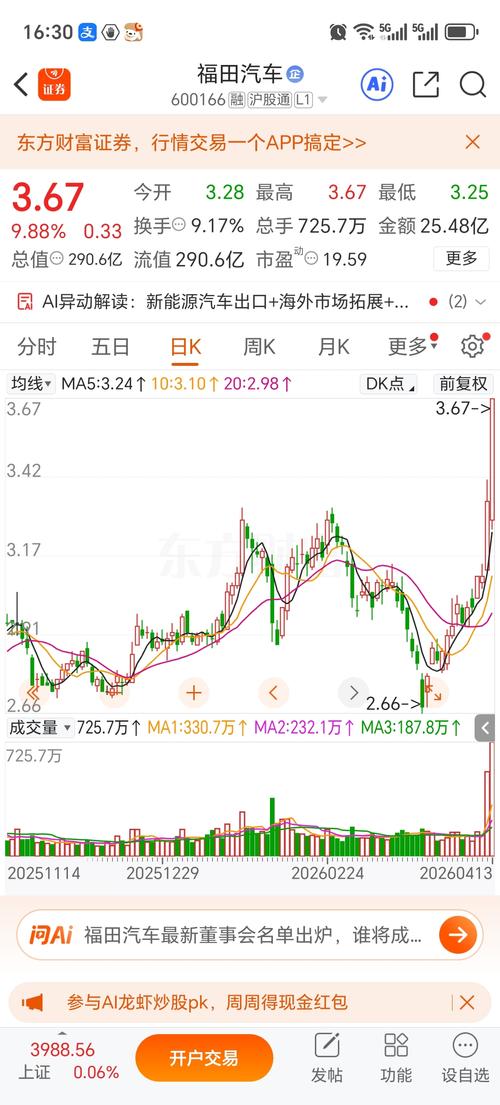 资讯 汽车板块午后直线上涨,福田汽车涨停