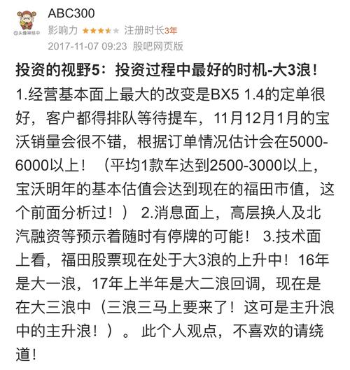 宇通三四年时间业绩大涨,股价也涨了几倍。福田不搞宝沃啥的也会比现在强,好不容易经营向好了,好好干主业。所有人炒股也一样,耐心点儿,别这山望着那山高,飘来飘去最终不赚钱的…