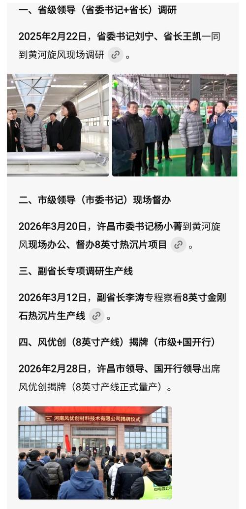 在目前的全国两会期间,金刚石散热材料作为高端半导体核心赛道备受关注,河南代表团与各代表委员纷纷为本土超硬材料产业创新发声。年初许昌市政协委员何伟伟在发言中,聚焦金刚石散热产业发展,为企业转型提质建言献策,为黄河旋风的战略升级注入了坚定信心。 作为许昌超硬材料产业的链主企业,黄河旋风立足数十年技术积淀,果断向高端半导体散热材料赛道转型,以金刚石热沉片为核心突破口,锚定12英寸金刚石晶圆攻关、碳基半导...