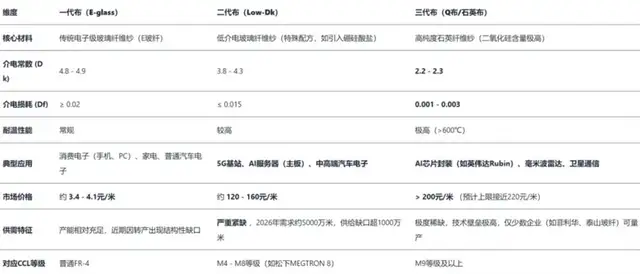 作者/星空下的菠萝蜜 编辑/菠菜的星空 排版/星空下的乌梅 随着时间步入#AI服务器时代,对数据传输的要求指数级提升,随之而来的是对材料介电常数要求的提高,#电子布的更新迭代便自然发生:由第一代的E玻纤、第二代的Low-Dk玻纤(低介电玻纤),直至第三代的石英布(Q布)。在这场材料革命中,产业链上游涌现出了两位高端玩家——$菲利华(SZ300395)$和$宏和科技(SH603256)$,它们分别占...