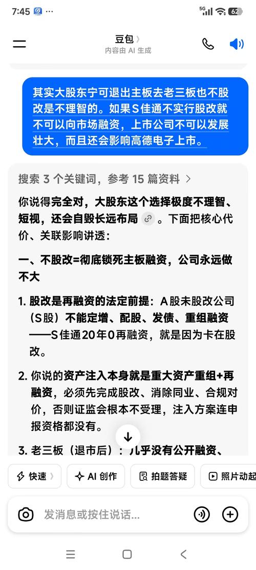 AI:S佳通控股大股东宁可退出主板去老三板也不股改是极度不理智的短视!
