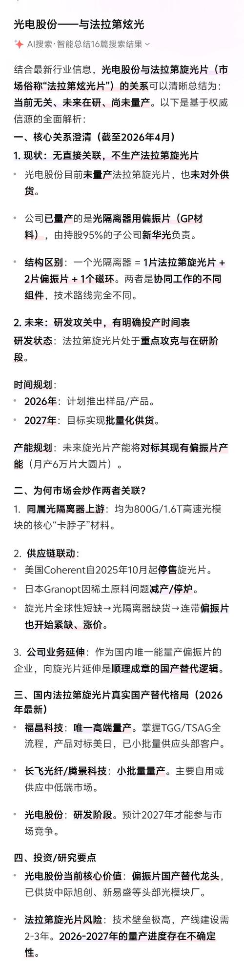 $光电股份(SH600184)$ 凡是做800G/1.6T/3.2T高速光模块、硅光模块的龙头,全部必须用GP玻璃基偏振片。 而国内能稳定供货的,只有光电股份(600184)一家。