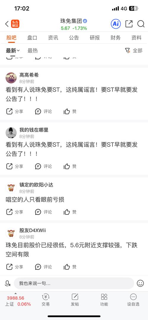 看到有人说珠免要ST,这纯属谣言!要ST早就要发公告了!!!
