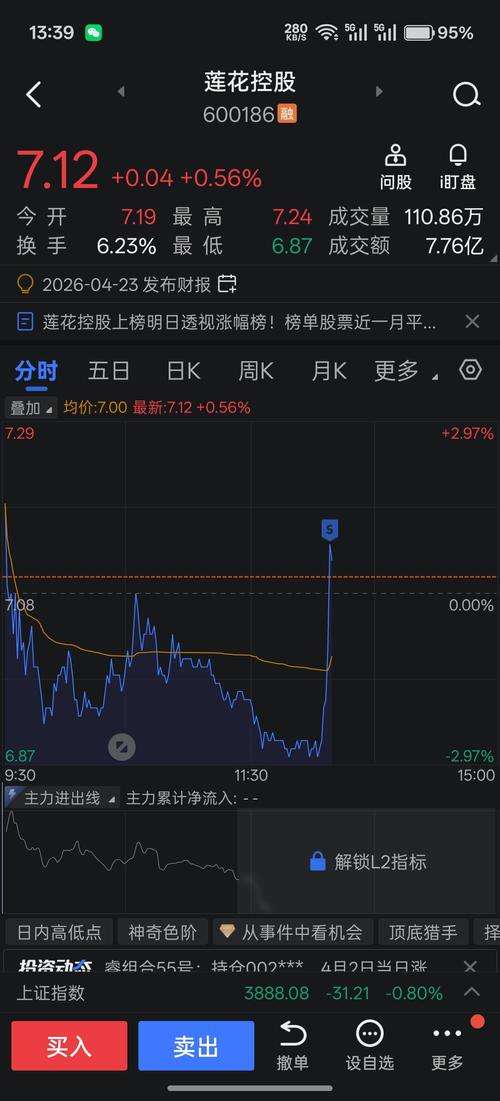 $莲花控股(SH600186)$首先我声明我没有走,还在今天尾盘又加了仓,刚才看贴吧有人质疑我是不是割肉走了,没有比莲花还好的趋势票了,踢踢也能挣钱不爽吗,现在大盘这个行情买啥能不跌,不要质疑我咯!我跟你们同在 呢?