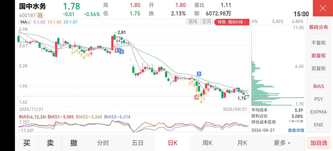$国中水务(SH600187)$今天在1.77—1.75元买了4万股。明天继续买。