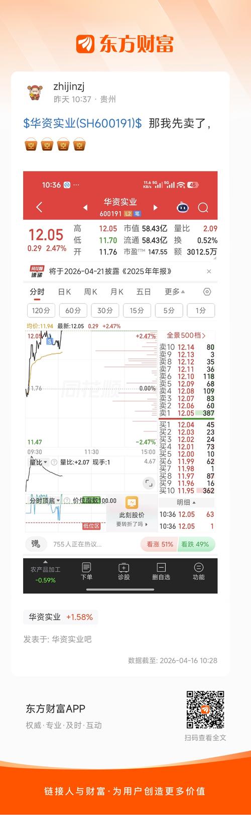 $华资实业(SH600191)$大爷的你能不能像点样子