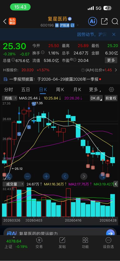 $复星医药(SH600196)$直接给你概率:(-10%,22.83元)的概率≈15%;大跌(-5%~-9%)概率≈60%;小跌/平开≈25%。 一、为什么跌停概率低(15%) 1.体量与流动性:675亿大盘蓝筹,日均成交6–8亿,几乎不会一字跌停;上一次跌停还是2025年4月,且次日就反弹。 2.业绩是“不及预期”非“暴雷”:-归母净利8.71亿,+13.87%,扣非5.01亿,+21....