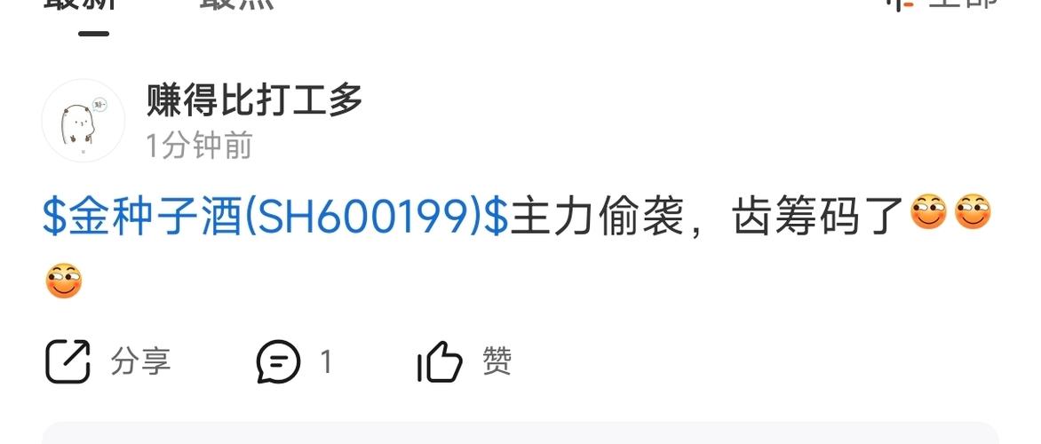 $金种子酒(SH600199)$这里面人才真多,这哥们这个头像说话已经可以想到是什么样子了..这个股看来还是长不了人才都还在,看得懂还能被套,这么弱的股该涨不涨看来还得熬