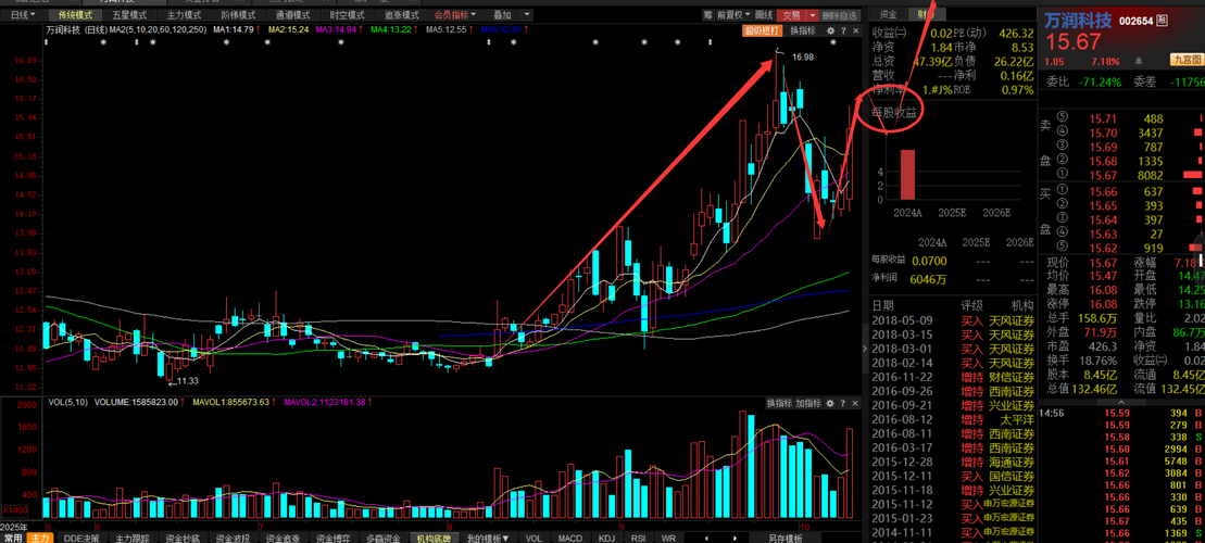 1:很多科技股都破位了,创业板这里在往下,随时都可能折返向上了,但是创业板一时半会儿不会像前一阵子走势那么强势,所以很多科技股会掉队了。预期创业板将会继续围绕60日均线整理后,才会走强! 2:指数下跌之际,才是观察的好机会!!这个阶段,一些后期还可以走强的牛股,就会快速收复跌幅!!然后在指数折返之际,创出新一轮行情的新高.. 我这里观察了两只,第一只存储芯片方向个股: 万润科技:002654(跟随...
