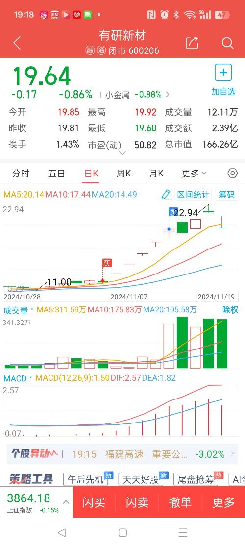 $有研新材(SH600206)$永远跟不上板块的死飞舞!