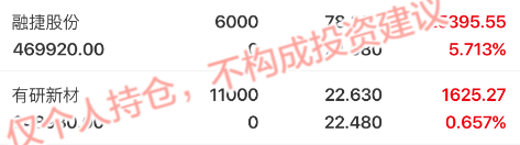 4月14日+2700+ 4月胜率66% 累计转正亏损数量比:40(转正)/140(亏损) 今天大盘还可以,还是炒的是硬件,目前持仓7只股票2+2只etf,减仓1只,建仓1只,其他没动。 $有研新材(SH600206)$继续等 $四方精创(SZ300468)$还是要等 $东利机械(SZ301298)$同样