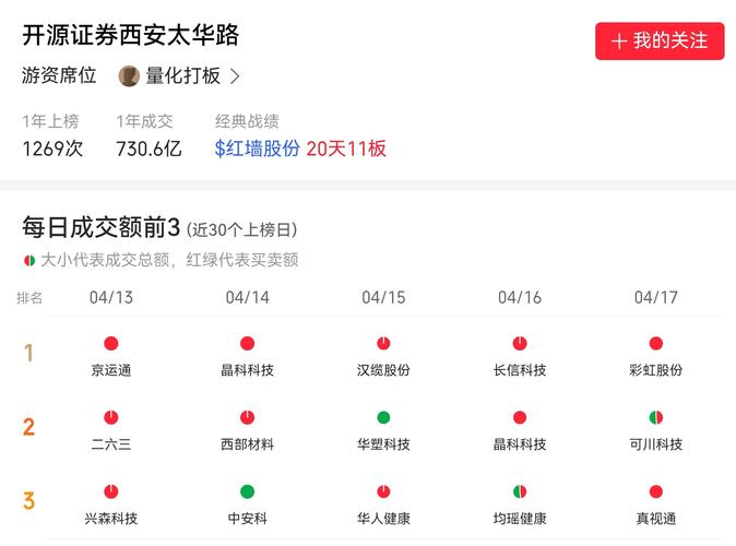 $衢州发展(SH600208)$开源证券西安太华路的经典战绩是:红墙股份,20天11板。开源证券西安太华路当日买入大于3000万的,三板起步。