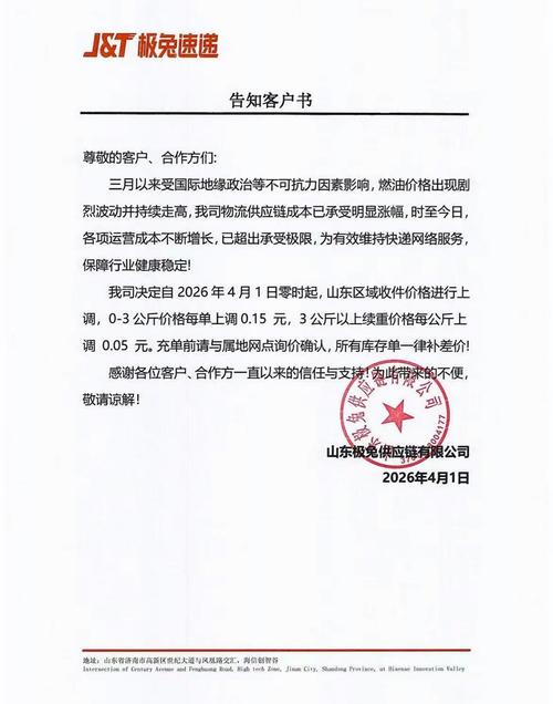 $申通快递(SZ002468)$$圆通速递(SH600233)$$东方财富(SZ300059)$ 又一地!4月1日起,中通、圆通、申通、韵达、极兔在山东区域同步上调价格,3kg以内每票涨0.15元,3kg以上续重每公斤涨0.05元,主要针对电商协议客户。这是继2025年9月后山东再次带头调价