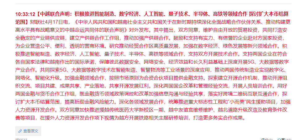 越南来访!中越联合声明加强电力合作!和高铁合作