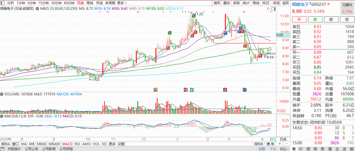 $铜峰电子(SH600237)$本周的反弹力度一般,9元都站不上,估计让很多人失望了。在新进的猪力吃饱之前,短期不要有太高的上涨预期,坚定看好铜峰的人还需耐心持有5-10个交易日,等反转信号出现,不看好的早点卖掉就好,成天在吧里喷和骂没有意义,不如去找外面的好票,就比如富信科技、圣泉集团、三环集团等等