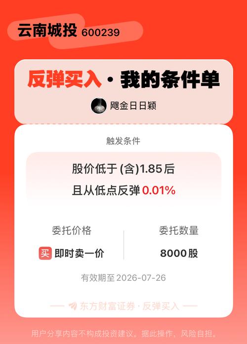 #条件单交流##反弹买入晒单#一位股神设置了一个反弹买入条件单,接下来就是见证奇迹的时刻~$云南城投(SH600239)$