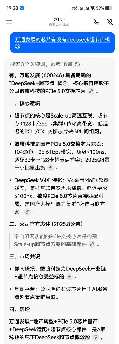 deepseek给的回复。 综合来看,昇腾950PR芯片的量产,预计将通过直接的供应链合作和间接的生态联动,为数渡科技带来显著的正面影响。 直接关联:深度捆绑,押注下一代技术 数渡科技已与华为及昇腾950PR在供应链有多层深度绑定,构成未来数年增长的核心逻辑: ·供应链锁定:数渡科技将作为华为昇腾950PR芯片的PCIe交换芯片供应商,已进入导入阶段并预计量产供货。 ·技术协同:数渡科技向华为授权...