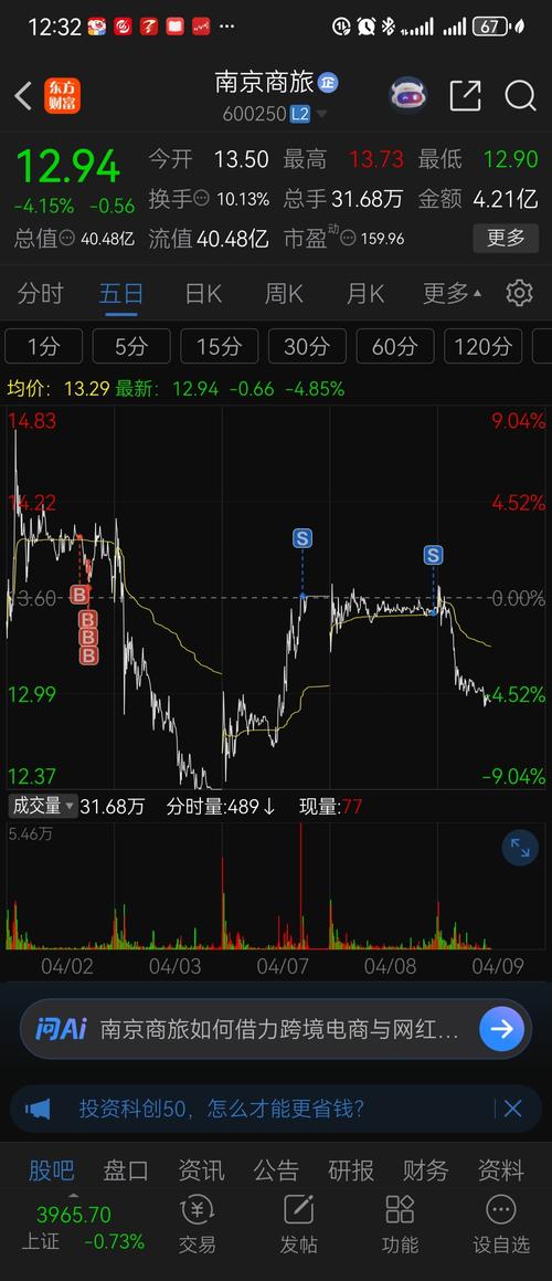 $南京商旅(SH600250)$昨天尾盘跟今天早上成交5e,不乐观啊