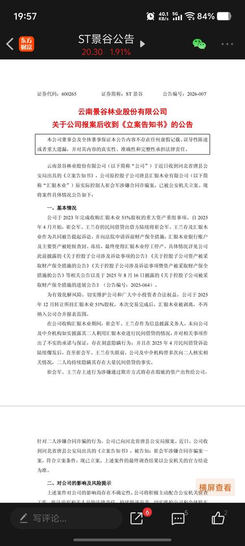$ST景谷(SH600265)$这个立案公告对公司来说毫无影响。 被立案调查的是是前大股东。公司有没有被立案! 对公司来说甚至可以说是利好。前大股东在景谷里面可搞了不少钱,不知道能不能让它吐点出! 反倒是马上年报之后将要被*ST!是个不大不小的利空!!! 今年的重点先把营收搞起来,如果今年营收再不合格,那可能就要退市了。 周大福的郑总已经来了,搞好营收轻轻松松。 #社区牛人计划##复盘记录##炒股日记#...