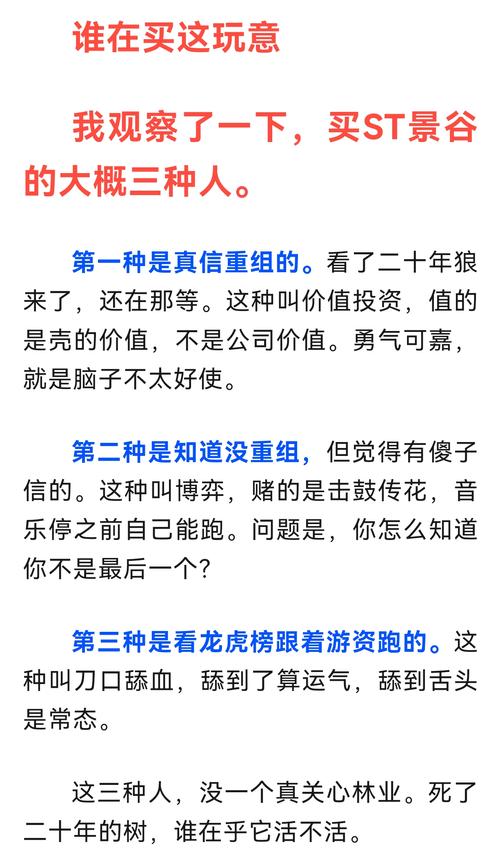 $ST景谷(SH600265)$ 我观察了一下 买ST景谷的大概有八种人。