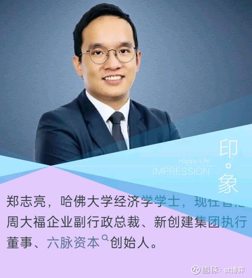 $ST景谷(SH600265)$$ST股(BK0511)$ 1989年出生,英文名Christopher,郑裕彤孙、郑家纯三子。 美国哈佛大学经济学学士,年少时离开父母到美国康涅狄格州的寄宿学校读书,后来顺利考入哈佛大学经济学专业。 期间,郑志亮选择利用暑假时间去摩根大通、高盛实习。2014年,毕业后的郑志亮进入中信里昂证券担任交易员,其后又加入天元资本。直至2018年,郑志亮回到家族企业新创建工...