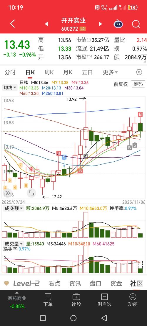 $开开实业(SH600272)$好几组搓揉线,要不要买一点呢?看着好弱