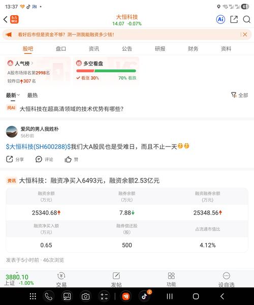 大恒科技散户都快洗没了,融资盘也从曾经的20多亿降到2.5亿还不涨?大盘大幅反弹,你还这么弱,还不抓紧机会上涨等什么呢?