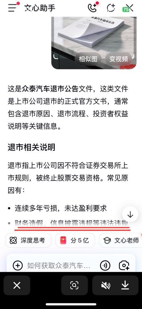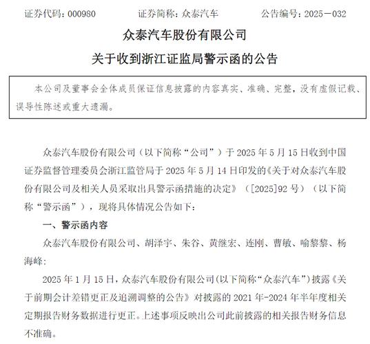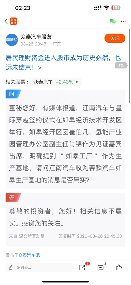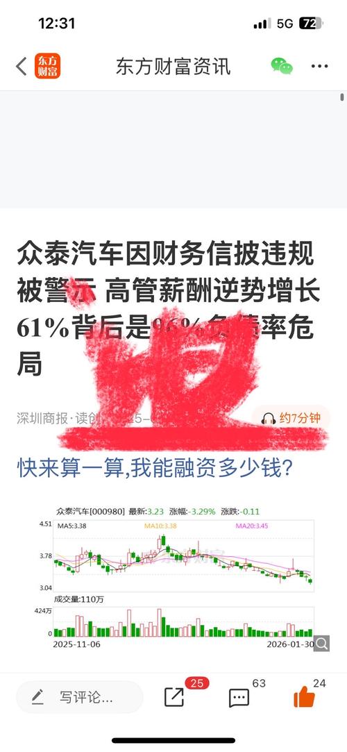 那么多钱不公告。招人是不是先要有生产机械设备先进场?没钱买设备了吧。事实胜于雄辩、胜于造谣……庞大虚假宣传央企接盘消息……从2019年至今,众泰已连续亏损6年,累计亏损高达250多亿元。在浙江证监局出具的警示函中,直指众泰披露的相关报告存在财务信息不准确问题。企业的信誉资本,与金融资本一样消耗殆尽。据知情人士透露...
