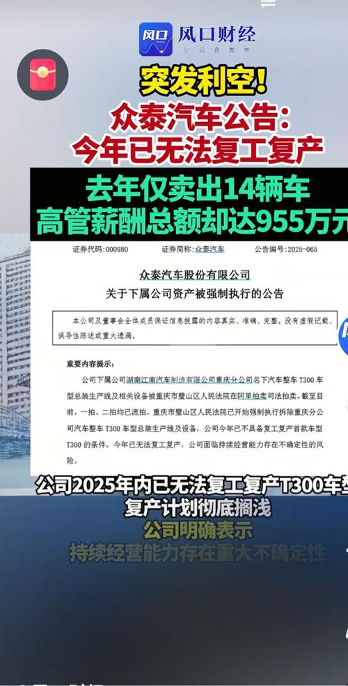 公告:公司五年累计虚增收入250亿人民币。公司早已停产,连生产合格证都已停止,一直未解封。高管年薪千万。一年才卖14辆汽车