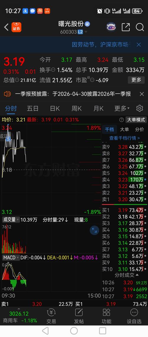 $曙光股份(SH600303)$大盘下跌,个股普跌,曙光该跌不跌却为何?懂的都懂。明日收盘一季报见分晓。